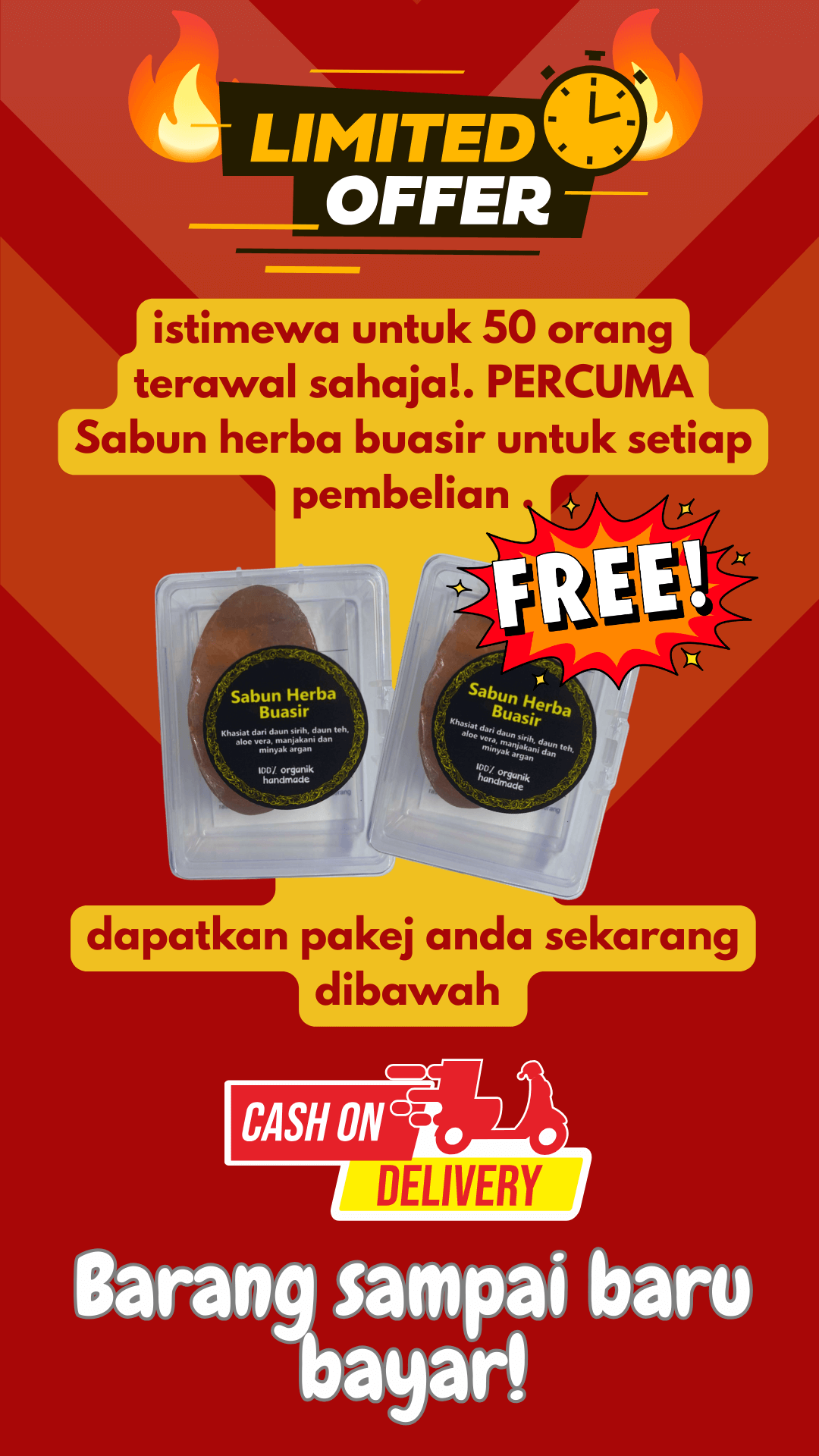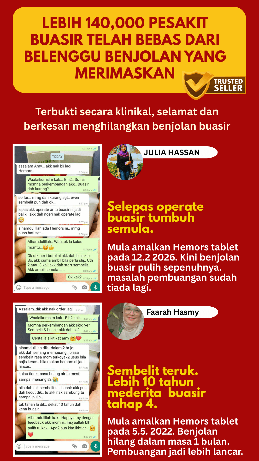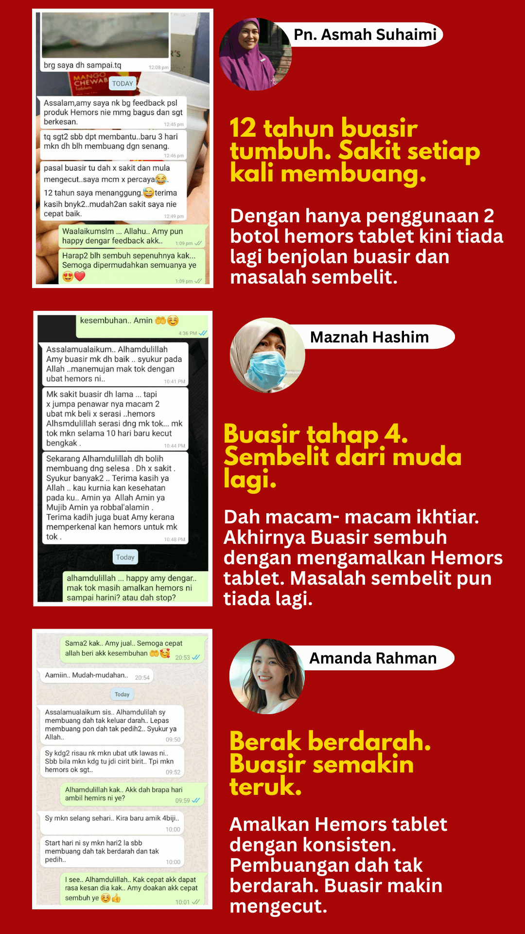 Sekiranya selepas penggunaan 1 Botol HEMORS & anda masih tak rasa apa-apa kesan Kami pulangkan duit pembelian anda 100% !