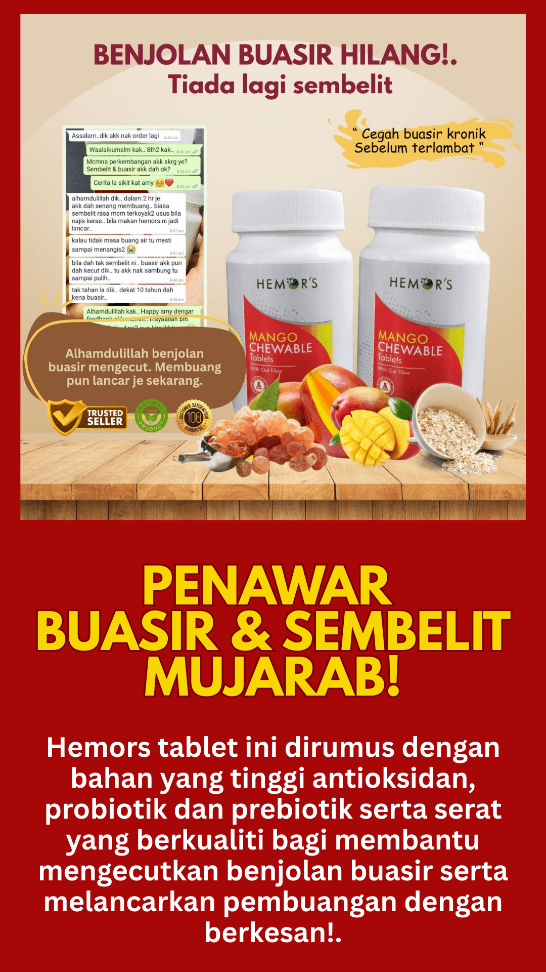 Kami berazam dapat membantu ramai lagi penghidap masalah BUASIR DAN SEMBELIT kembali pulih seperti pengguna-pengguna yang telah amalkan HEMORS sebelum ini (dengan izin-Nya)